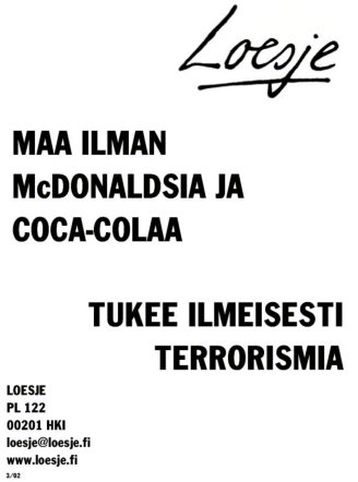"Maa ilman McDonaldsia ja Coca-Colaa tukee ilmeisesti terrorismia" -