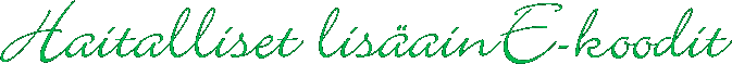 E 142 - Vihreä S E 160d - Lykopeeni E 161b - Luteiini E 161g - Kantaksantiini E 173 - Alumiini