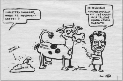 Sunell, Milka 2001: Miten Suomen yksityinen metsäteollisuus hankki länsimaisen ydinvoimalan. Tutkimus taloudellisesta ja poliittisesta vallankäytöstä 1970-luvulla. Yhteiskuntahistorian pro gradu -tutkielma, Helsingin yliopisto 2001. <http://ethesis.helsinki.fi/julkaisut/val/yhtei/pg/sunell/mitensuo.pdf> Luettu 12.8.2003. Myös tekijän hallussa. [1] Avain viittausjärjestelmääni on puolestaan seuraava: valtiopäivälähteeni sisältävät verkkoversiona kevätkauden 2002 pöytäkirjat asioista M 4/2001 ja M 5/2001 (yhteiskeskustelussa). Pöytäkirjat löytyvät eduskunnan palvelimelta seuraavilla tiedoilla ja koodeilla: lähetekeskustelu 13.-14.2.2002: PTK 8/2002 vp ja PTK 10/2002 vp. Ainoa käsittely 21.-24.5.2002: PTK 62/2002 vp, PTK 63/2002 vp, PTK 65/2002 vp ja PTK 66/2002 vp (äänestys). Koska käyttämissäni pöytäkirjojen versiossa ei ole sivunumeroita joihin viitata, paikannan lähteeni muulla tavoin ja käytän hieman perinteisestä poikkeavaa merkintätapaa. Esimerkiksi merkinnässä ”VP 2002/62 ptk, ministeri Mönkäre” VP viittaa valtiopäiviin, 2002 valtiopäivävuoteen, 62 pöytäkirjan numeroon, ptk ”pöytäkirjaan” ja ministeri Mönkäre puhujaan. [2] Kioto-vastaisuudesta ks. esim. Hylkilä 2003, 88. [3] VP 2002/62 ptk, ministeri Mönkäre; UD 11.4.2002 (sitaatti); VP 2002/8 ptk, ed. Sjöblom (toinen sitaatti); VP 2002/65 ptk, ed. Tiura; HS 5.5.2002; HS 7.5.2002; HS 18.5.2002; HS 19.5.2002; UD 1.2.2002, PK; UD 1.2.2002; VL 8.2.2002, PK; VL 22.2.2002; VU 22.4.2002; VU 17.1.2002; VU 21.5.2002. Ks. myös TT:n kanta ilmastostrategiaan VU 11.5.2002. Niin ydinvoima- kuin Vuotos-keskustelunkin uskonnollisen kuvaston tutkiminen laajemmin olisi erittäin mielenkiintoista, mutta tämän työn puitteissa mahdotonta; ks. myös viite 13. Muuan keskustelun merkittävimmistä piirteistä oli, että uusiutuvista ja energiansäästöstä käytiin keskustelua selkeästi talousargumentein, ei niinkään ympäristöargumentein. Palaankin aiheeseen luvussa 3. Uusiutuvien ja säästön kehystäminen talousasiaksi oli osa vastustajien strategiaa, mutta vei heidät kannattajien kotikentälle ja heikensi vastustajien argumenttien tehoa, mistä ks. esim. Lammi 2004; Kyllönen 2004. [4] VP 2002/8 ptk, Mönkäre. Vrt. esim. UD 1.2.2002, Ydinenergianuorten Anu Nummelinin haastattelu: ”Jos voimalaa ei saada, mehän joutuisimme polttamaan hiiltä, hän [Nummelin] kauhistelee.” SAK:n kannasta UD 1.2.2002. KIO1 tunnettiin keskustelussa ydinvoimattomana maakaasuskenaariona, KIO2 puolestaan ydinvoimaskenaariona. [5] Leinonen 1997 (kuva); UD 1.2.2002 (sitaatti); VL 22.2.2002; VP 2002/8 ptk, ed. Forsius, ed. Krohn; VP 2002/62 ptk, Soininvaara (toinen sitaatti); HS 30.4.2004; HS 19.5.2002. Lyhyellä aikavälillä skenaarioiden päästöt ovat identtiset. Ero näkyy pitkällä aikavälillä. Kiistan jälkeen Kioto-ministerityöryhmä sopi, että skenaarioiden pitkäaikaisvertailua ilmentävä kuva sisällytetään kansanedustajille jaettavaan tekstiin. KTM kuitenkin ilmoitti myöhemmin, että kuva jätetään pois edustajien versiosta. Kyllönen 2004, 67. Skenaarioiden lähtöoletuksia puolestaan ei luovutettu lainkaan KTM:n ulkopuolelle. Kojo 2004, 246. [6] VP 2002/62 ptk, ministeri Mönkäre, ed. Markkula-Kivisilta; VP 2002/63 ptk, TaV pj. Luhtanen (sitaatti); VP 2002/8 ptk, ed. Isohookana-Asunmaa; UD 13.3.2002; UD 1.2.2002, PK; VU 17.5.2002. VU 21.5.2002; Kyllönen 2004, 66-68. [7] Hylkilä 2003, 87. [8] VL 22.2.2002. [9] VP 2002/8 ptk, ed. Sjöblom; VP 2002/62 ptk, ed. Markkula-Kivisilta, ed. Kemppainen; HS 14.5.2002; UD 1.2.2002; VU 17.1.2002. [10] Hylkilä 2003, 146 (sitaatti); VP 2002/65 ptk, ministeri Hassi; VP 2002/62 ptk, ed. Rosendahl; HS 11.5.2002; Leinonen 2002 (kuva). Piirros sisältää mm. kaksinkertaisen viittauksen lääkäri Mönkäreen epäeettisyyteen. Kuva viittaa ensinnäkin kevääseen 2001, jolloin Suomen hiihtomaajoukkue ja sen lääkäri jäivät kiinni dopingin käytöstä ja skandaalia puitiin laajalti. Toisaalta Mönkäre yhdistyy kuvassa natsi-Saksan ”Doktor” Mengeleen. Mengele oli tiedemies, joka teki eettisesti epäilyttäviä kokeita, tutkimuskysymyksenään esim. kuinka nopeasti mereen upotettu ihminen kuolee. Ydinvoiman vastustajien eräs argumentti olikin, että ydinvoima tekee kansalaisista koekaniineja. Argumentti sai lisäpontta, kun äänestyksen jälkeen tuli tietoon, että TVO:n valitsema reaktorimalli on prototyyppi. Ympäristövaikutuksista argumentoidessaan vastustajat käyttivät laajemminkin ydinenergian elinkaaren riskialttiutta koskevia argumentteja, joista tarkemmin luvuissa 2.2 ja 2.3. [11] VP 2002/62 ptk, ed. Markkula-Kivisilta, VP 2002/63 ptk, ed. Laukkanen. Palaan aiheeseen luvussa 4. [12] VP 2002/10 ptk, ministeri Hassi (sitaatti), ed. Lahtela, ed. Tiusanen; VP 2002/8 ptk, ed. Biaudet; ed. Mertjärvi, ed. Seivästö, ed. Kankaanniemi, ed. Forsius, ed. Tiusanen; VP 2002/62 ptk, ed. Kemppainen, ed. Ojala, ministeri Hassi; UD 13.2.2002; VL 8.2.2002, PK; VL 22.2.2002; VL 10.5.2002; HS 18.5.2002.Kuten edellä totesin, uusiutuvista ja energiansäästöstä puhuttiin pitkälti talousargumentein, joten palaan aiheeseen luvussa 3. Myös etujoukossa olemista perusteltiin lähes pelkästään taloudellisilla hyödyillä. [13] VP 2002/8 ptk, ed. Nepponen. ”Suurta peruskysymystä” on suora lainaus. Argumentti ”suuresta peruskysymyksestä” sisälsi teologiseen kuvastoon viittaavia piirteitä, kuten myös ilmastonmuutosargumenttien ajoittain saama apokalyptinen tyyli. Uskonnollisesta kuvastosta ja apokalyptisyydestä ks. Hajer 1995 sekä Lammi 2004, joka puhuu myös suomalaisten vahvasta teknologiauskosta. [14] VP 2002/8 ptk, ed. Jaakonsaari. [15] Suomen Kuvalehti 4/2002. [16] ”Bioenergialla” kannattajat viittasivat useimmiten puuhun ja turpeeseen. Tämä käsitteen poikkeava käyttö on merkittävää, sillä yleensä termi bioenergia viittaa paljon laajempaan joukkoon erilaisia eloperäisiä energianlähteitä, joista suuri osa j